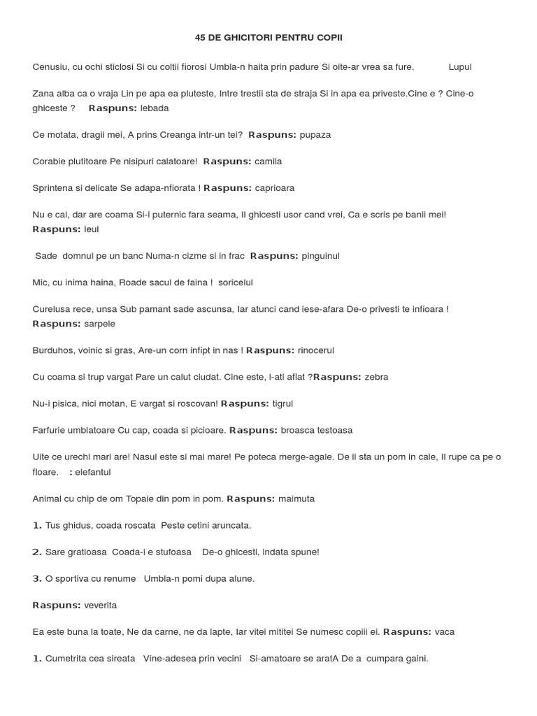 Dokumen Tips 45 De Ghicitori Pentru Copii Despre Animale