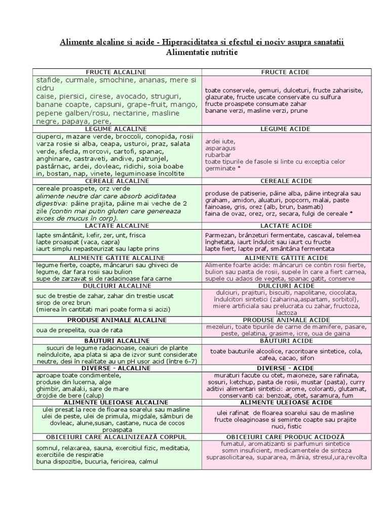 Alimente Alcaline Si Acide Hiperaciditatea Si Efectul Ei Nociv