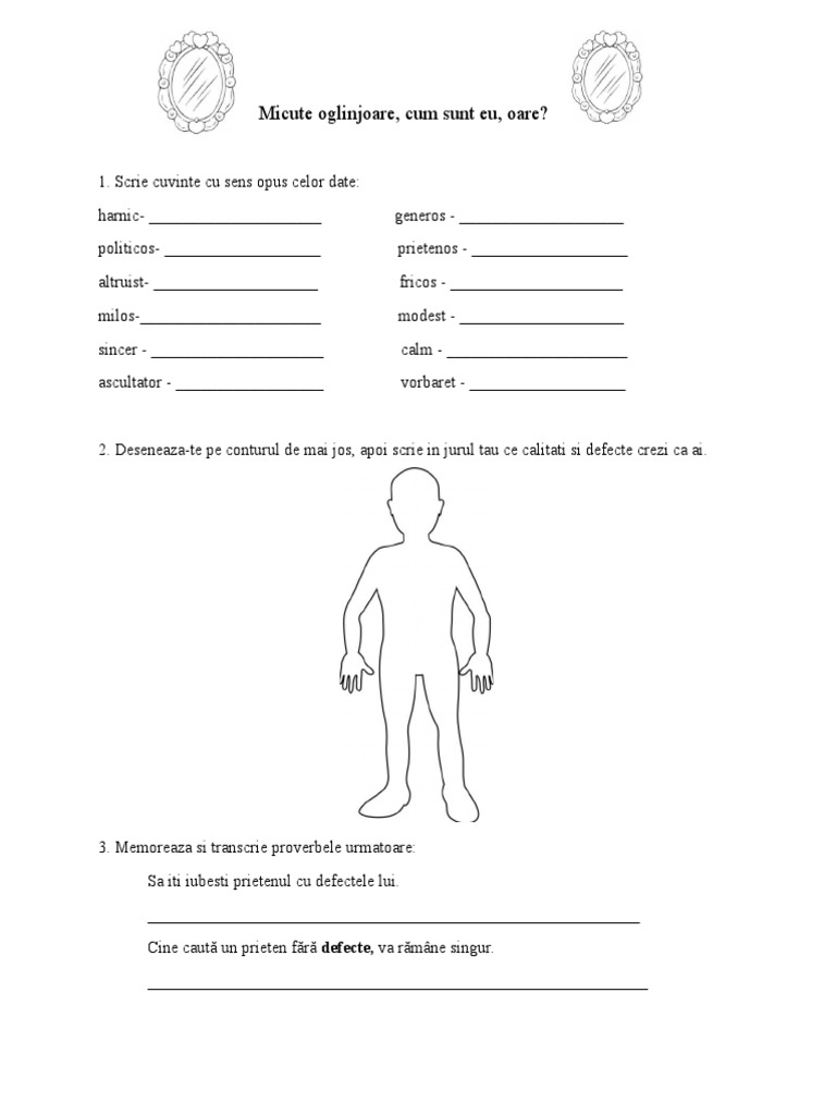 Fise De Lucru Despre Calitatile Si Defectele Elevului