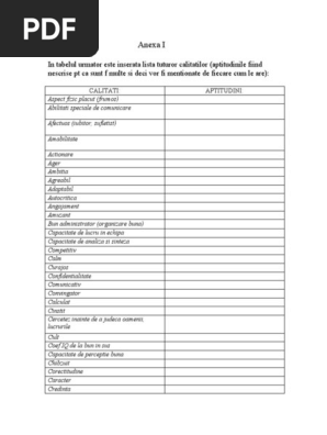 Calitati Si Defecte Fisa De Lucru