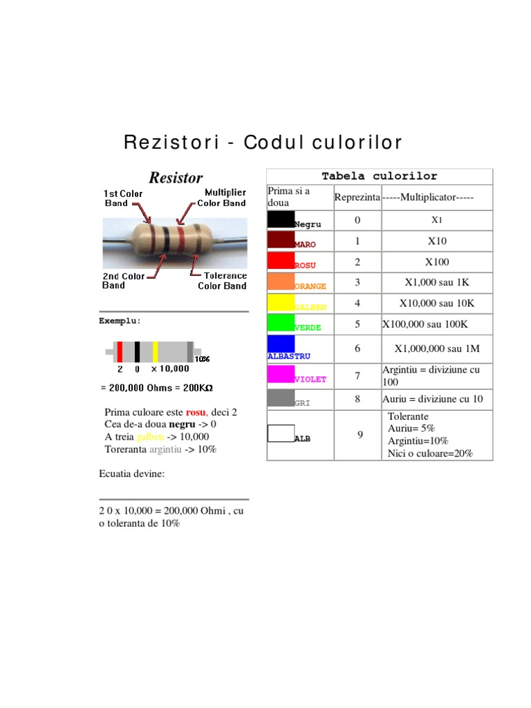 Codul Culorilor Pentru Rezistori Electronica Emilian Robert Vicol