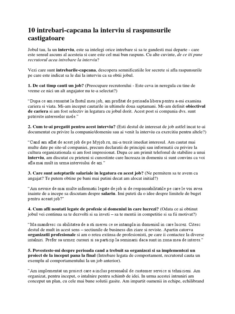 10 Intrebari Capcana La Interviu Si Raspunsurile Castigatoare