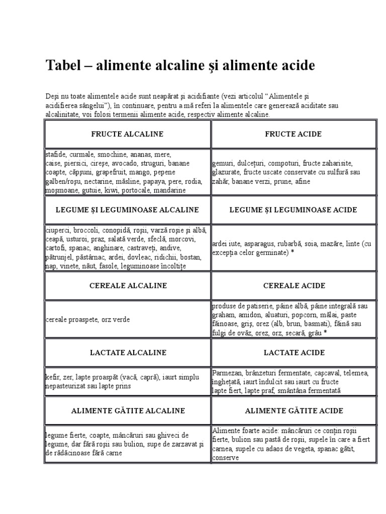 Mais malheureusement les emballages ne nous informent pas de l acidité des aliments. Tabel alimente alcaline şi alimente acide. Cateva dintre alimentele care iti asigura necesarul de alcaline din organism fara a ti pune in pericol metabolismul sunt. Dieta alcalină înseamnă o dietă bogată în alimente alcaline care compensează efectele alimentelor acide.