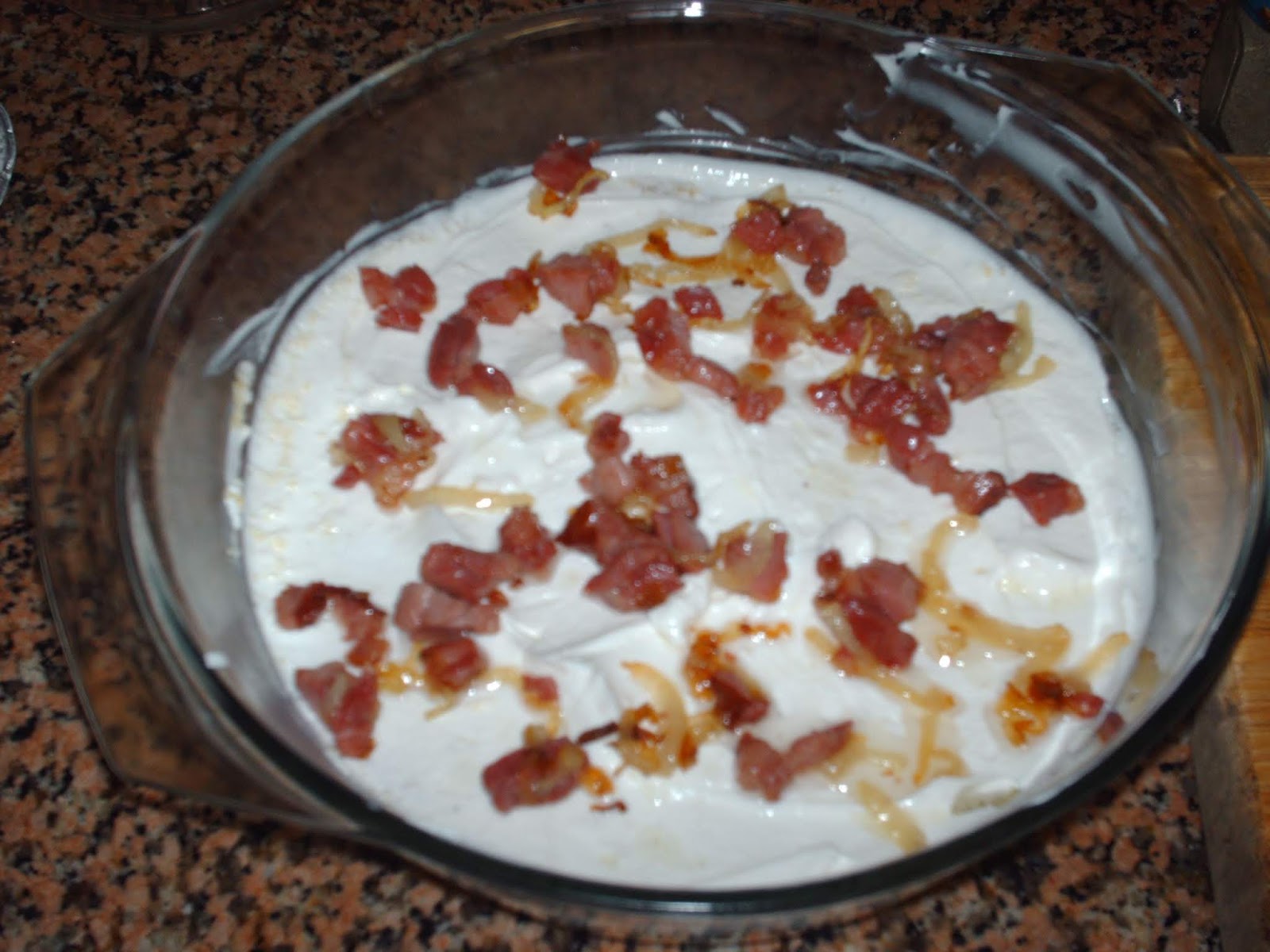 Mămăligă Cu Branză Smantănă Bacon și Ceapă Caramelizată La Cuptor