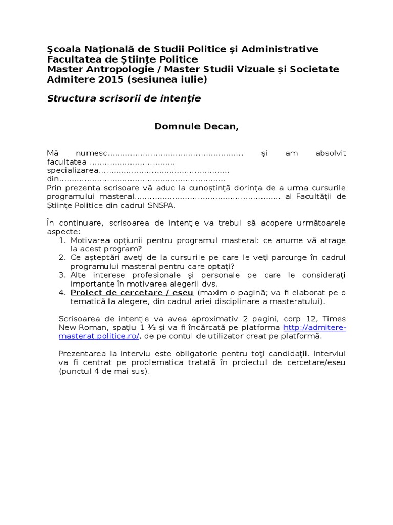 Model Scrisoare De Intenție Master Sociologie Aplicată