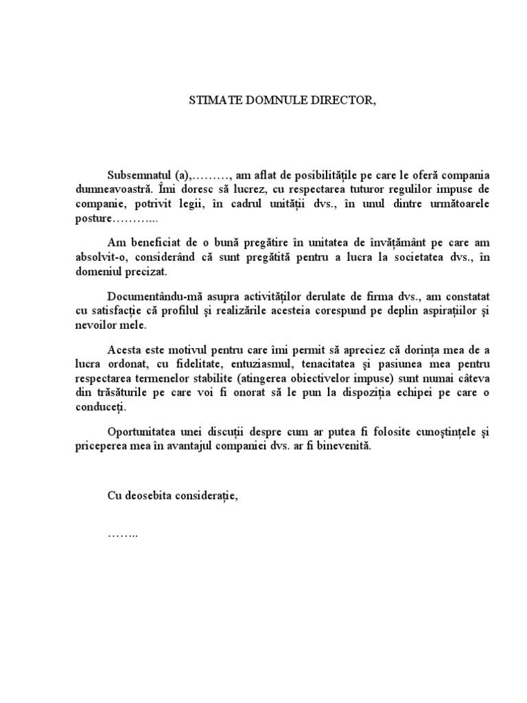 Scrisoare De Intentie Model