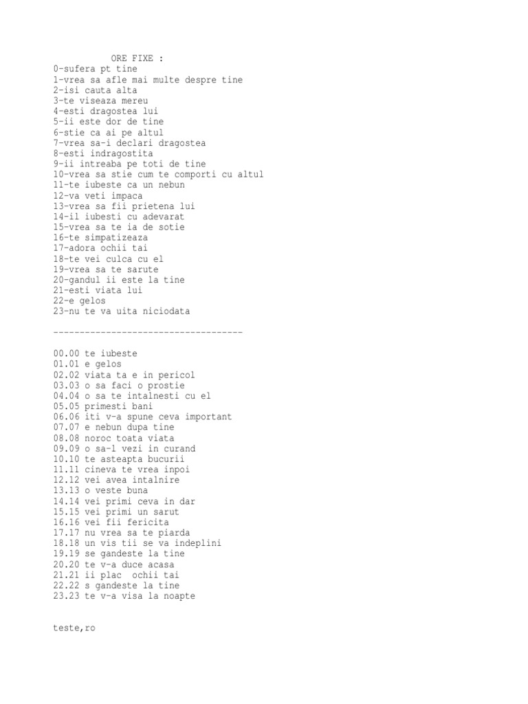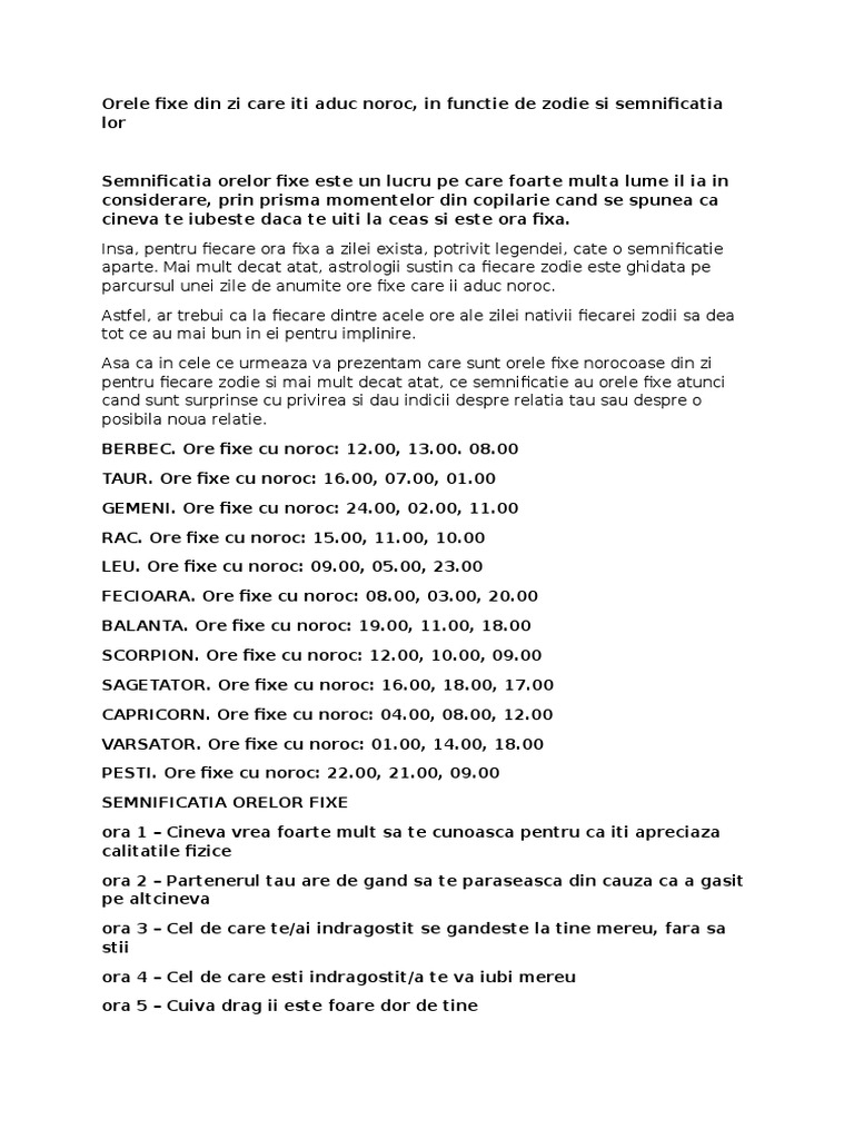 Semnificatia Orelor Fixe