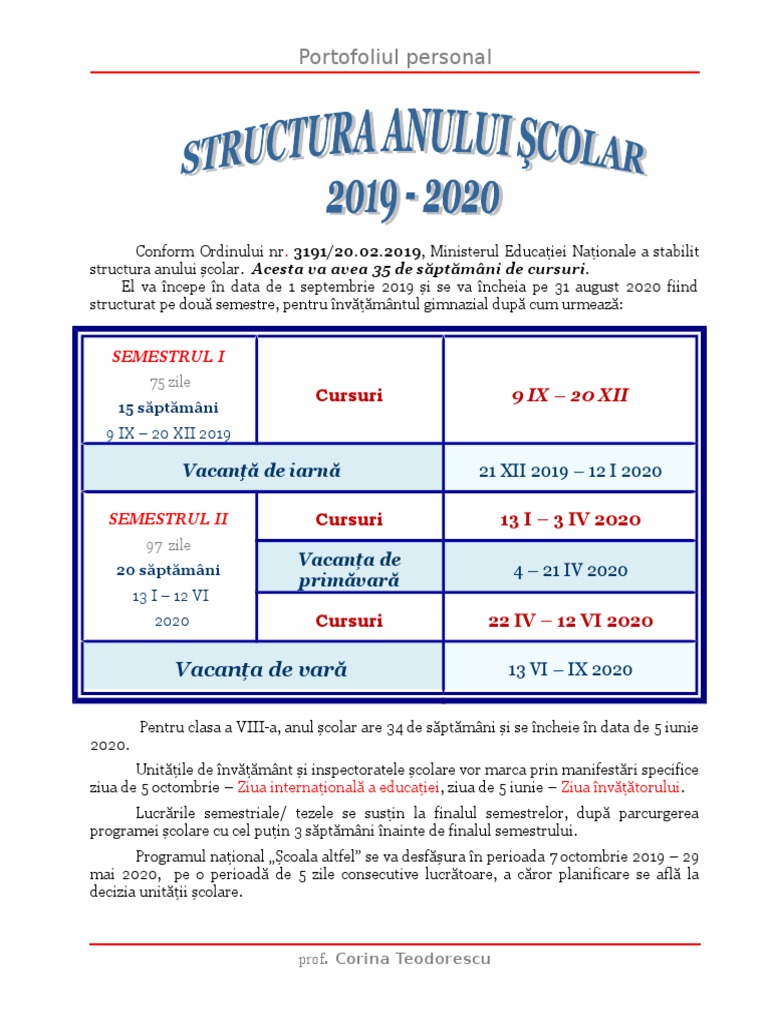 Structura Anului școlar 2019 2020 Totul Despre Mame