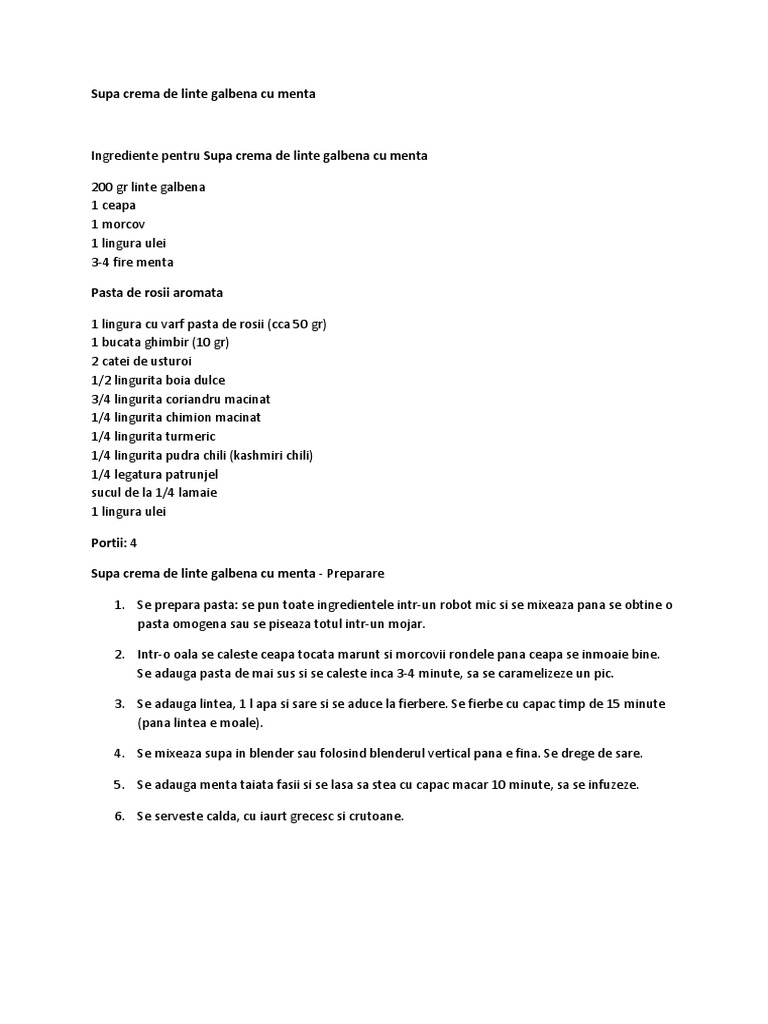 Supa Crema De Linte Galbena Cu Menta Rețete Culinare