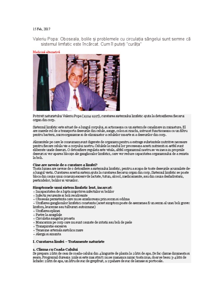 Valeriu Popa Curatarea Limfei Tratamente Naturiste Si